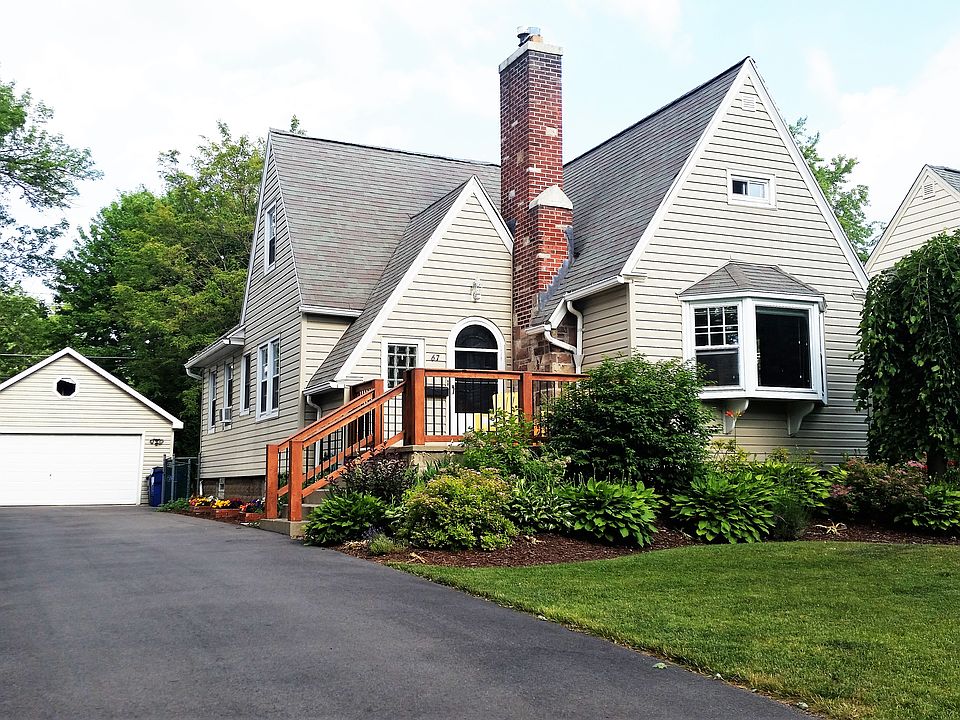 Beautiful English cottage style maintenance free cape in the heart of Snyder. Short walk to Main street shops and restaurants, the library, or park with playground from this quiet tree lined street. Move-in ready with hardwood floors and trim throughout, living room has built-ins, bay window and lovely fireplace, large formal dining room and bright kitchen. Second floor master with office area, huge walk-in closet, and 1/2 bath. Updates include: garage roof (15), electric (12), HWT (11), black top driveway (10), siding (09), and new windows.