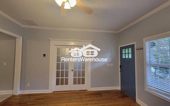 This home welcomes you with a rocking chair front porch to enjoy the quiet street view. Step inside to find a thoughtfully designed layout featuring 4 bedrooms and 3 baths across 1400 square feet. One of the bedrooms could easily be used as an office or flex space, with french doors opening onto the living area. The home was originally built in the 1920's and has charming features including a decorative fireplace in the living room and real hardwood floors. Recent updates include modern stainless steel appliances, upgraded counter tops and ceramic tile flooring. Enjoy overlooking your private, fenced back yard from the deck on the back of the home. The pet policy is open to friendly dog breeds that will love the outdoor space as well.
