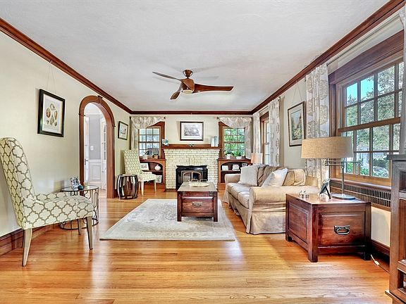Meticulous Colonial in the heart of the Horace Mann neighborhood. Step inside and immediately appreciate the gumwood and gorgeous hardwood floors. Fireplace living room and the large dining room makes it perfect for hosting. A bright sunroom offers flexible use as a playroom or office. The kitchen includes an island, white cabinetry, and a built-in bench overlooking the backyard. A mudroom with laundry and a full bath complete the first floor. The 2nd floor offers four bedrooms and a full bath with charming archways and period detail. The third floor is a private primary suite with a walk-in closet, full bath, and custom built-ins. The LL includes a family room and plenty of storage. Outside, enjoy a backyard oasis with new stonework and patio, mature plantings, and a newly built oversized two-car garage with finished bonus room above, complete with mini-split, perfect for a home office or gym. Ideally located on a picture-perfect street in one of Melrose most desirable neighborhoods!