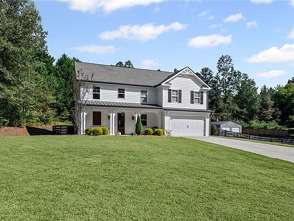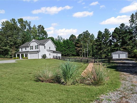 Beautifully maintained 4BR/3BA slab home on 1 acre with no HOA, built in 2018. This custom builder’s personal residence offers quality finishes and thoughtful design throughout. One bedroom and full bath on main. Separate dining room, plus oversized pantry/prep room with extra sink, dishwasher, full-size refrigerator, and laundry. Upstairs includes the spacious primary suite with wet/coffee bar, dual walk-in closets, and luxury en suite featuring dual shower heads. Two additional bedrooms and second laundry room also upstairs. Interior highlights include: all-wood cabinetry, Frigidaire Professional Series appliances, rocker switches with dimmers, Jeld-Wen sliding glass door, whole-house surge protector, and fresh paint inside and out. Four-board fenced backyard. Exterior features: insulated 2-car attached garage with insulated door, plus a 4-car shop with power (100 AMP service—weld-capable and ready for high-demand electrical). Less than 10 minutes to Hwy 515—privacy, convenience, and no restrictions. Rare find with premium upgrades and functional space inside and out! Buyer to verify all information and dimensions deemed important.