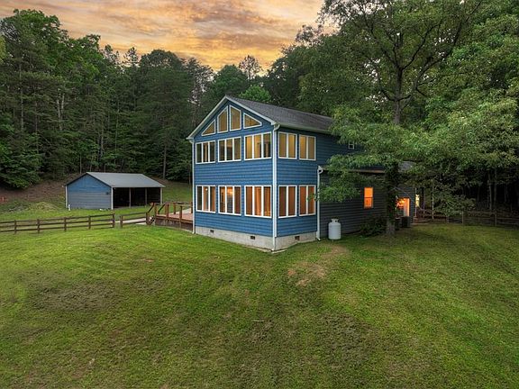 Charming 2BR/2BA Home with Pond Views, Luxury Finishes & Expansive Living Spaces! Nestled on a serene lot overlooking a peaceful pond, this beautifully updated 2-bedroom, 2-bathroom home offers upscale finishes, spacious living areas, and a seamless blend of indoor and outdoor living. Step inside to an open-concept layout featuring a spacious living room, dining area, and a gourmet kitchen outfitted with stainless steel appliances, quartz countertops, gas cooktop, wall oven, and pantry. A whole-house tankless water heater ensures on-demand hot water and energy efficiency. The main level offers a comfortable bedroom with an attached full bath, complete with a custom-tiled shower. Upstairs, retreat to the massive primary suite that spans the entire second floor—boasting a spa-like bath with double vanities and a luxurious walk-in shower with dual showerheads. Convenient upstairs laundry is included. Two sunrooms—one on each level—feature walls of windows to showcase sweeping views of the fenced-in backyard and the tranquil pond beyond, perfect for relaxing or entertaining year-round. A spacious two-bay, oversized garage provides ample storage, while a three-bay open barn and an additional carport add flexibility for equipment, hobbies, or extra vehicles. This home is the perfect combination of comfort, style, and functionality—all in a picturesque setting.