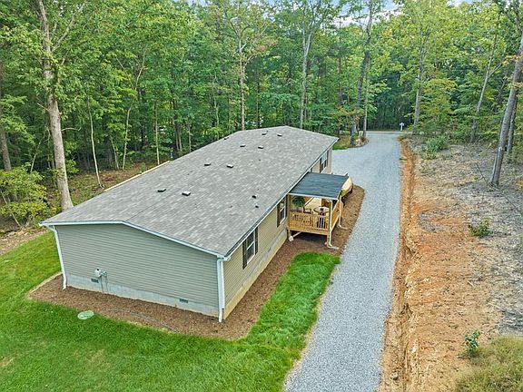 UNIQUE AND PRETTY SETTING..... YOU'LL LOVE THIS NEWLY INSTALLED 2022 MFT HOME ON BLOCK FOUNDATION TUCKED IN WOODED 2.2 ACRES, WITH SEASONAL VIEWS OF LAKE..... Customizations include a glass sliding door leading to the generously sized private decking (reinforced for hot tub possibility), front covered porch w/ramp, gutters with screen guards, downspouts and newly planted fescue for erosion control, and a private driveway with a 3-vehicle parking area. The interior boasts of an open floor plan and is a spacious home that includes a family room in addition to the living room. The primary en suite includes a massive walk-in closet. The laundry area has space for a large pantry. Views of nature from every window. Seasonal lake view can be year-round with the removal of a few trees. Plenty of space to create walking trails on your unrestricted property, which is the land within the circle, making it have road access from all sides. Country life living while being close to Fall Creek FallsPK