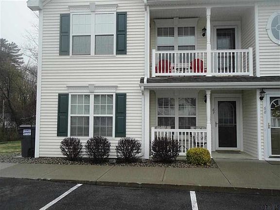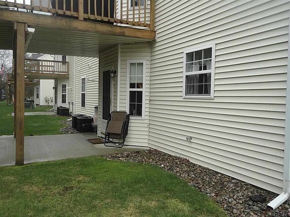 Taxes are without STAR. Based on $175,000. Age 55 and over unit. Showings start 5/14/2014. 5 yr old GHA furnace/ larger than original. Ceramic tile bath floors, applianced oak kitchen to patio with protective rain ceiling overlooking woods, includes garage #18. Washer & Dryer included, central air, 2 bedrooms, plus den and laundry room. Very well cared for, move in ready