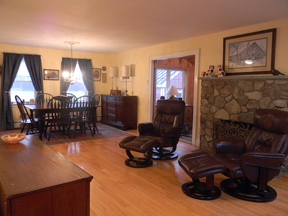 This house has been completely redone... nothing to do but move in! Immaculate 3 Bedroom 2 Bath Cape with Attached Garage and Workshop. Gorgeous Eat-In Kitchen with Cherry Cabinets, Quartz Countertops and Tile Floor with Radiant Heat. Front to Back Dining Room with Wood Floor and Wood Fireplace opens into the Sunroom with Pellet Stove, Natural Woodwork and Cathedral Ceilings. First Floor Updated Bath with Tile Floor, Radiant Heat and Laundry Hookups. Formal Living Room with Hardwood Floor. Large Bedrooms with Hardwood Floors and Updated Full Bath with Tile Floor and Radiant Heat on the Second Floor. Large outbuilding used as a workshop in the backyard with a propane line run for future heating use. Farmers Porch overlooks the spacious backyard with beautiful woodland views of wildlife. Large garage with walk-up storage. Plenty of privacy with 4+ acre potentially subdividable lot with town approval. Call Virginia Kazlouskas (603) 620-3428 to setup a showing.