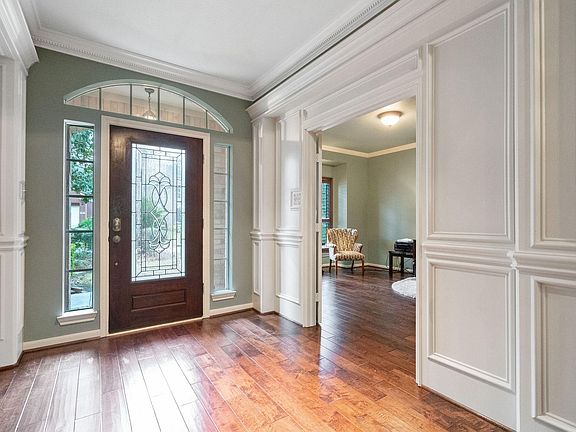 Enjoy your own pool just in time for spring & summer. This beautiful home built by Village Builders is situated on an over sized lot and offers a resort style back yard with covered patio, built in fire pit, outdoor speakers & plenty of yard space. Great floor plan includes beautiful trim work throughout, plantation shutters, wood floors, tile in wet areas, 2 story foyer w/sweeping wrought iron staircase. The study has French Doors with built in shelves and is perfect for a home office. Large family room includes built ins, fireplace & coffered ceiling. Big island kitchen has subway tile back splash, wine fridge, walk in pantry. Large primary suite has over sized windows offering view to pool & greenery. Master bath has separate whirlpool tub & shower, double sinks & 2 walk in closets with custom closet organization by elfa. Upstairs includes 3 spacious bedrooms w/walk in closets & 2 full bathrooms, a MEDIA ROOM plus a Texas basement that can be converted to a 5th bedroom.