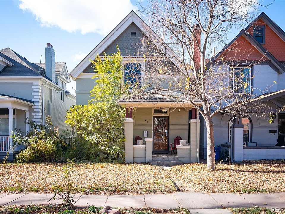 This unique home is full of charm and character, from the artisan-carved hand rail, to the leaded glass, there is nothing cookie cutter about this house. The look and feel of the neighborhood is amazing with mature trees and close proximity to Washington Park, Cherry Creek bike trail, downtown and Cherry Creek. This home has so much to offer with original wood floors throughout the main level, exposed brick and numerous built-ins. The main floor includes living room, dining room, office, half bath, sun room and laundry. You’ll love cooking in the newer white kitchen with quartz countertops, stainless appliances, custom subway tile backsplash, built-ins, and large walk-in pantry with sink and laundry. The charm continues upstairs where you’ll find three bedrooms including a generous primary bedroom, plus a large full bath. The unfinished basement has generous storage for all your outdoor gear. The yard is perfect for bbq’s and entertaining with deck, flagstone patio and mature landscaping. This winter you’ll appreciate the detached two-car garage. This home is totally move-in ready with new paint and carpet, all you have to do is unpack and start enjoying that Colorado lifestyle!