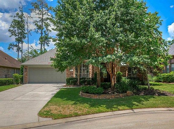 Immaculate 1 story customized Darling home minutes from I-45,Grand Pkwy, short walk to Woodlands amenities. Stylish & versatile floor plan w/ tons of natural light. Wall of windows & high ceilings in great room open to kitchen w/all new SS appliances, quartz counters, adorned by custom cabinets & sleek finishes. Master+generous guest bedroom each w/ fully remodeled PR baths. Huge study (3rd bedrm opt), formal dining+bonus workshop/hobby room w/AC & storage built over garage, covered back patio