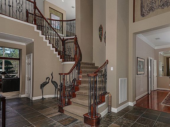 Spectacular one-of-a-kind waterfront home in highly sought-after neighborhood of Pepperdale Park. Zoned to top-rated Woodlands schools. Panoramic water views from all main rooms. Island kitchen with stainless steel appliances including new dishwasher, cooktop, microwave, and refrigerator. Fantastic breakfast bar. 2 story family room with soaring ceilings, and walls of windows showcasing gorgeous backyard and water views. Surround sound throughout. New washer and dryer stay! Large bedrooms with walk-in closets. Added arcade/5th bedroom with 2 climate-controlled storage areas and 2 Texas basements. New roof 2021. Two new 5 ton HVAC systems. EV charging station. Step outside your backyard to catch and release large pond. Only a few steps away from neighborhood park with tennis and basketball courts, covered pavilion with picnic tables and grills, and multiple children's play areas.
