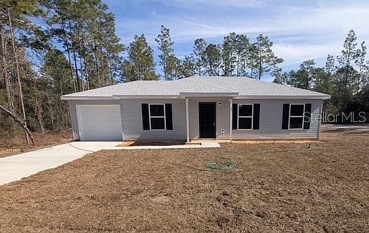 This split plan is open, light & bright. From the moment you walk through the front door you will feel the openness with the cathedral ceiling in the foyer, living room, and dining room! The kitchen comes complete with new stainless steel range, microwave, and dishwasher with ample counter space and cabinetry! Enjoy the morning cup of coffee at the breakfast bar. Do laundry with ease in the air-conditioned laundry room. This home rests on just under a 1/4 acre lot ~ enough room for the family & pets to play, but not too much yard work. Garage door measures 8' x 7'. The community center hosts regular activities and has outdoor pavilions available for event rentals. Amenities include basketball courts, tennis courts, pickleball courts, playgrounds, and a boat ramp and dock! All this with no HOA! The home is conveniently located to an abundance of outdoor recreational activities! It is just a short drive to the Withlacoochee or Rainbow Springs State Park for swimming, canoeing, tubing., fishing, boating, camping, and hiking the nature trails just to name a few! The World Equestrian Center is just minutes away. Builder is including a 1 year full warranty and a 2-10 home warranty! Any dimensions listed are approximate. Photos/Virtual Tour are to show interior and exterior colors and finishes and may or may not be of this actual listing. Garage orientation and floor plan may vary for actual home.