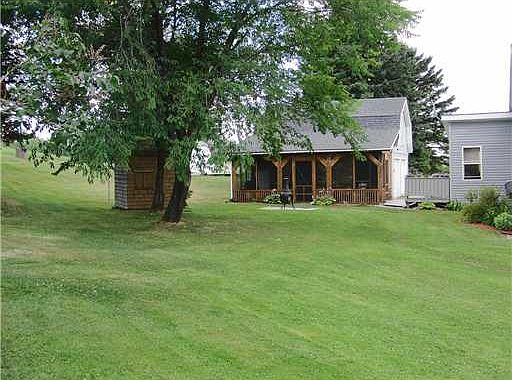 Enjoy views, apple trees, raspberries, large screened summer room surrounded by nature & wildlife. Over-sized garage w/overhead storage. Home is multi-level w/amenities including bonus room w/murphy bed. An easy conversion to in-law apt. A must see!