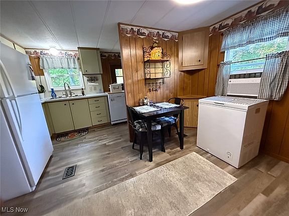 Located in Sebring Estates-Move right into this cozy 2-bedroom home located at the end of the street that features a peaceful wooded view from the living room and kitchen. Recent updates include new windows throughout (excluding two in the back bedroom), a fully remodeled bathroom, new vinyl flooring in the kitchen, updated electrical service, a new water heater, and mostly replaced skirting with treated lumber. All offers are contingent upon park approval. A background check is required as part of the review process. For park approval inquiries, please contact Samantha Morris at Sebring Estates, 330-612-8995.
