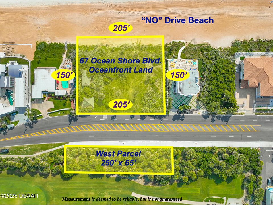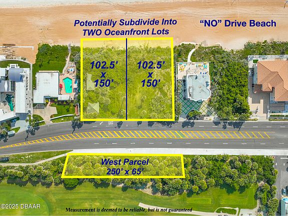 A rare opportunity to purchase this HUGE PRIME OCEANFRONT PROPERTY with 205 FEET OF LUXURIOUS OCEAN FRONTAGE located on the PRISTINE 'NO DRIVE' BEACH surrounded by IMPRESSIVE ESTATE HOMES in the most prestigious area of Ormond Beach, Florida.... Build ONE or TWO SINGLE FAMILY HOMES!! ... This awesome property ZONED R-2 is the LARGEST PARCEL IN THE AREA and can be divided into TWO BUILDABLE LOTS giving it tremendous value... Build an oceanfront mansion or subdivide the parcel and build your dream home on one parcel and sell the other parcel to pay for it! This property also includes AN ADDITIONAL 13,000 SQ. FT. STRIP OF LAND which is ZONED R2.5 on the west side of Ocean Shore Boulevard which CAN BE COUNTED TOWARDS TREE PRESERVATION AND OVERALL LOT AREA when the area on the east side is developed providing tremendous added value... This entire parcel totals 1.07 ACRES of land calculating to 47,325 SQ. FT... The lot is CLEARED and it is HIGH ABOVE THE BEACH so you'll enjoy AWESOME VIEWS OF THE AZURE ATLANTIC OCEAN AS FAR AS THE EYE CAN SEE!!... It is also located in FLOOD ZONE "X" providing added protection and peace-of-mind...... Currently there is a cottage and detached garage on the property... UTILITIES IN PLACE & IMPACT FEES ALREADY PAID!! A stone's throw to Granada Boulevard providing convenient access to shopping, great restaurants, medical facilities and much more!! Hear the sounds or the surf, smell the salt air & see majestic sunrises every day!! MAKE ALL OFFERS KNOWN!!!!!!!
