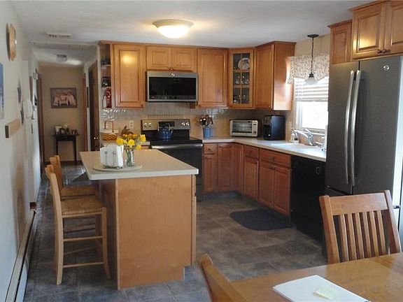 Approach this well maintained home from the newly laid stamped concrete walk. Enjoy an updated kitchen with newer stainless appliances and Corian counter tops, island and open concept for entertaining. Fireplaced living room and sliders to large patio off dining room. Updated bathrooms, roof, septic, windows. Lower level is totally finished with full bath/shower, 2 bonus rooms plus family room with wood stove. Walk out to your private stone patio and nicely landscaped yard and located at the end of a quiet dean-end road. This home is vinyl sided. Close to parks, recreation and walking paths.