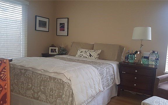 Adorable single family DETACHED home in an interior location. Neutral paint, scraped ceilings, dual pane windows, tile flooring in the living space and wood flooring in both bedrooms. No carpet in the home at all. The kitchen has been refreshed over the last few years and has a lot of cabinetry. Both bathrooms have been redone over the past couple of years and have new vanities, flooring, etc. There is a private yard with a covered patio for all your entertaining needs. The back yard has a sprinkler system and plentry of grass. Washer/Dryer, Refrigerator and Gardner included in the lease! Make this your own home. Conveniently located to shopping, schools, freeway access. Fabulous landlords too!!