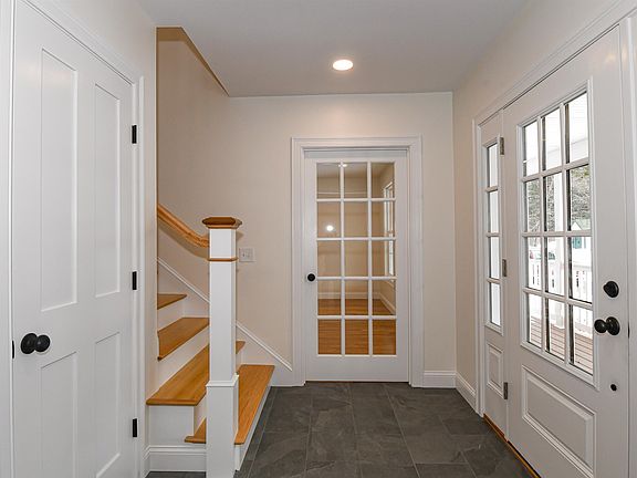 A Rare opportunity to own a New Custom-Built home in the Fryeburg Village! Top of the line building materials throughout this gorgeous home. The inviting exterior has a relaxing farmers porch that overlooks the tastefully landscaped front yard with a paved driveway and brick walkway. Immediately upon entering the foyer you will notice the 8’4” ceiling height and all the natural light from all the windows. The open concept dining room with hardwood floors flows into the large open kitchen with solid wood self-closing cabinetry, granite counters, walk in pantry and high-end appliances. The side entrance deck is convenient for directly bringing in groceries or for a garage in the future. The living room is located off the foyer with a french door wood floors and recessed lighting. The first floor also has a bedroom with hardwood floors that can double as an office, and a full bath that has a tiled and glass shower. The graceful staircase to the second floor leads to a large open hallway and to the primary ensuite with beautiful high-end carpeting, walk-in closet, bathroom with tiled and glass shower. There are two additional bedrooms on the second floor all with lighted closets and high-end carpeting, full bath with tub, and laundry room. The full basement with painted cement flooring and high ceiling can be additional living space for a den or game room. The entire house has smooth plastered walls! There is Central AC for the hotter summer days and high-speed internet!