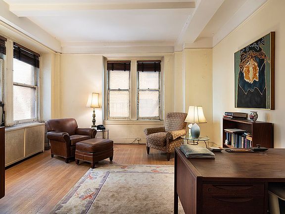 Entrance is off the lobby. There is a waiting room, 3 sizable offices with lovely prewar high ceilings. All offices have windows as does the bathroom.