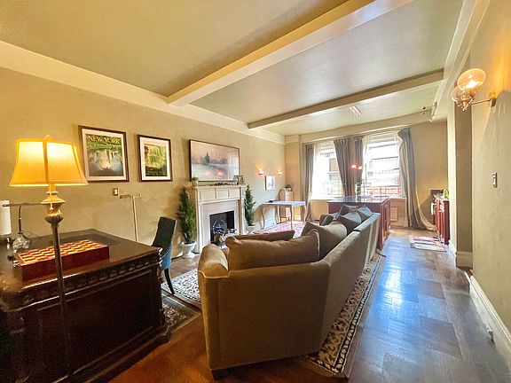 Step into this charming, sunlit corner one-bedroom that perfectly blends classic prewar charm with modern living. With high, beamed ceilings, sleek hardwood floors, and a decorative fireplace, this apartment is full of character. The traditional foyer leads you into an open-concept living and dining area that's perfect for entertaining, complete with a chic island kitchen. The updated, windowed bathroom sits just off a short hallway, and beyond that, your bedroom awaits offering breathtaking views of the Empire State Building and Park Avenue.