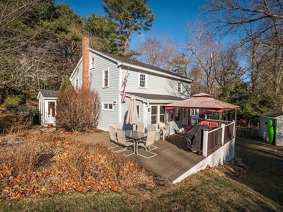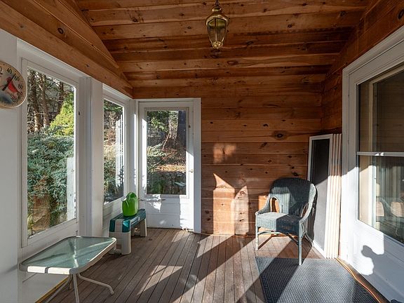 Located on a cul de sac close to Pleasant Pond, this 3+ bedroom home is ready to welcome its new owners. Step from the entry porch into a wide hallway which leads to the sitting room which has a beamed ceiling and open fireplace. The adjoining dining room features built in china cabinets and opens to the eat in kitchen which overlooks the private back yard. The kitchen has granite countertops and updated cabinetry. A home office completes the first floor. Upstairs, the main bedroom has a cathedral ceiling and skylight as well as generous storage space including a cedar closet. There are two other generous sized bedrooms as well as a full bathroom on this floor. A bonus room with a loft area completes this level.The laundry is in the basement. Two covered porches and a deck overlook the yard which abuts conservation land. Recent upgrades include a new roof (2022), new windows (2024), and exterior painting.