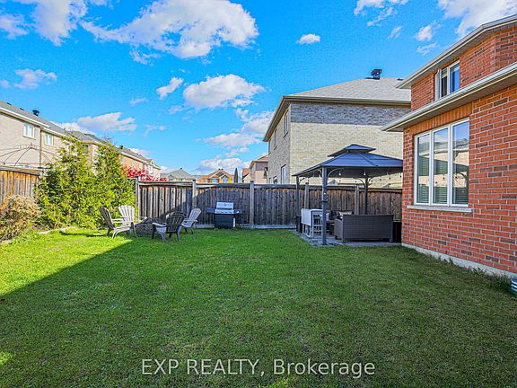 Welcome to this stunning and value-packed detached home located in the highly sought-after Wismer Community. This spacious 4+1 bedroom residence features a two-car garage and is situated on a quiet, kid-friendly street with no sidewalks, offering both safety and tranquility. This beautifully maintained home with the Original Owner boasts 9-foot ceilings, fresh paint throughout the first and second floors, and elegant hardwood flooring. The modern kitchen is equipped with quartz countertops, a stylish backsplash, and a convenient eating island, perfect for family gatherings and entertaining. The professionally finished basement includes a bedroom with an en-suite bathroom, providing additional space for guests or family members. The backyard is meticulously landscaped with interlock patio stones and a charming gazebo set, creating an ideal environment for outdoor relaxation and social occasions.Located within the top-ranking Bur Oak Secondary School zone (ranked 11th among 746 schools), this home offers excellent educational opportunities. Recent upgrades include a new roof (2023), quartz kitchen countertops (2024), the addition of a gazebo (2024), and hardwood flooring on the second floor (2025).With quick access to Highways 407 and 404, this property presents an exceptional opportunity for comfortable family living in a highly desirable community. Don't miss out on this fantastic home! Close to Markville Mall, Centennial GO, TTC accesible, Angus Glen Community Centre