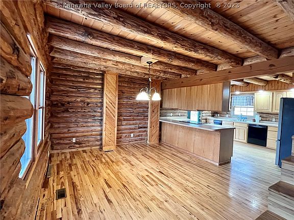 Privacy galore in this 3 Bedroom and 2 Bath Log Home. Situated on 35 acres, this property has a large metal building with concrete floors, a separate electrical panel and a 3-stall Barn with storage attached. Great for horse lovers.