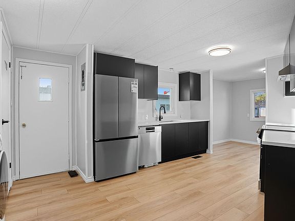 This NEWLY RENOVATED home offers 3 beds and 1.5 bath. All BRAND-NEW appliances, including furnace and hot water tank. New 6.5mm vinyl plank flooring throughout. All walls have been freshly PAINTED. NEW tub, toilets and vanities as well as upgraded pex pipes. Beautiful QUARTZ countertops and EASY CLOSE kitchen cabinets are all new. Newer VINYL WINDOWS all around. The roof was replaced in June 2025. Heat tape was done in 2023. Exterior areas were upgraded with NEW wood siding, trim and paint. The covered CAR PORT had all 4 support posts and cement replaced. Front ATTACHED PORCH has a 4'x8' storage area with a locking door. The home was levelled in June 2025. Freshly PAVED PARKING pad. Near by bus stop, store, and parks.
