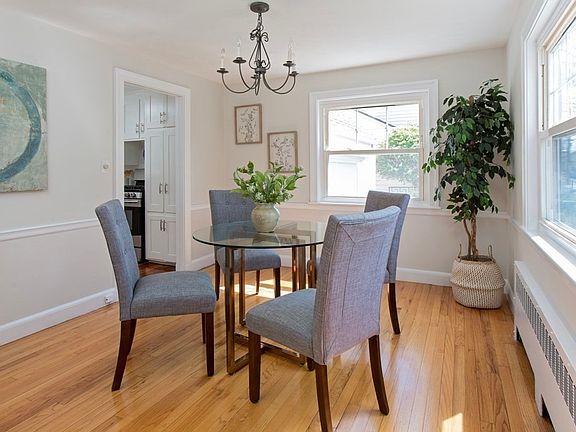 A charming cape style home with an idyllic fenced in yard, two bedrooms and one full bath. The 1st floor has a front-to-back living room with fireplace and crown moldings, a dining room and a kitchen with S/S appliances & a large window to view the backyard. The sunroom adjoining the kitchen leads you to a fenced backyard complete with patio, garden and shed. The 2nd floor features the large primary bedroom with closet, a second bedroom, full bath and linen closet. The basement has two rooms with one being finished and the other a utility and storage section with laundry. The finished basement area is perfect for a home office, exercise or play room. The one car garage has a second story bonus insulated space that is accessed from the second bedroom and offers excellent additional storage possibilities. This delightful home offers hardwood floors throughout and is just the perfect home that is complimented by a spacious and peaceful yard. Convenient to VFW Pkwy,I-95,Dedham Sq, Rt 1