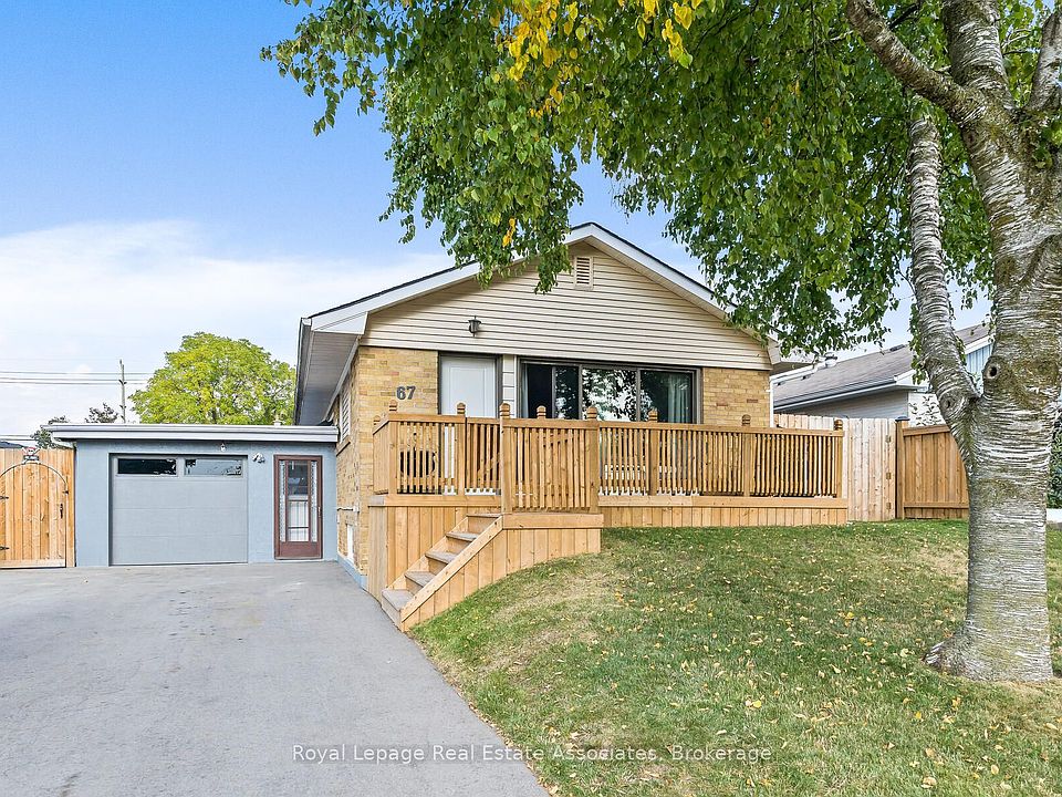 Welcome to 67 Roseford Terrace, nestled in Acton's sought-after Glenlea neighbourhood! This beautifully updated bungalow offers 4 spacious bedrooms and 2 renovated bathrooms, making it the perfect blend of comfort and style. Enjoy your morning coffee on the new wood front porch and soak in the charm of this inviting home. Over the past three years, the home has seen many upgrades & updates, including new lighting throughout, newer laminate floors on the main level, and an open-concept layout featuring a bright living room, separate dining area, and an eat-in kitchen. The oversized primary bedroom features his-and-hers closets and two large windows. Easily converted back into two rooms if desired. The finished basement is a true highlight, with above-grade windows, a cozy wood stove, a fantastic rec room, gym area (or flexible bonus space), and plenty of storage. Step outside to a very private, fully fenced backyard with two custom gates, a concrete-covered patio, and a gazebo perfect for late-night entertaining. The extra-deep 29 x 14 garage has been fully finished, insulated, and upgraded with a bright new window and insulated garage door, plus a convenient separate entrance into the home. The double driveway easily accommodates 8 cars with no sidewalk to worry about. All of this is within walking distance to parks, schools, shopping, and more! Extras: Windows (2024). Doors (2023). Front Porch/Deck (2024). New Garage Door. Roof (2020). New Appliances (2023).