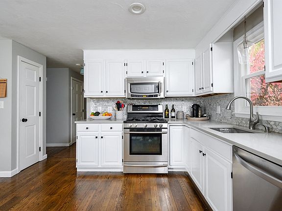 **OPEN FRI.11/14 4:30-6PM & SAT.11/15 1-2:30PM** Beautifully updated 3-bed, 2-bath home ready to welcome its new owners in Hanover! This move-in-ready gem features beautiful new hardwood floors throughout with carpeted bedrooms, a wood burning fireplace, new windows (2021), a newer roof, & high-efficiency heating system. The kitchen has been thoughtfully updated with refinished cabinets, new hardware, a modern sink and faucet, quartz countertops, marble backsplash, and stainless appliances. Both baths are renovated with new fixtures, custom vanities w/ quartz countertops and contemporary finishes. The refinished, heated basement provides flexible space for a home office, playroom, or extra living area. Outside, take advantage of the large, private yard and relax by the fire pit. The home includes a natural gas hookup and plug in service for generator. Walking distance to King St Market & Grill, and Forge Pond with walking and bike paths, trails, sports fields and more- Come see!!
