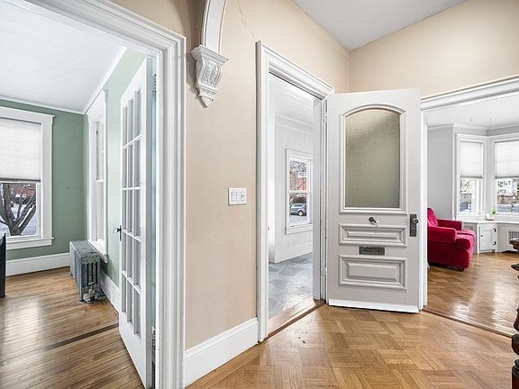 BOM Due to Buyer Financing! One of a Kind Mansard Colonial blending classic charm w/ modern convenience! The main level offers 10' Ceilings, Built-ins, dramatic Wrap-Around Staircase & stunning Archway in the Open Foyer. The Grand Living Room features gorgeous Original Parquet Floors & double Bay Window filling the room w/ natural light. Large Kitchen w/ SS Appliances, Butler's Pantry & additional sink. Formal Dining Room & Updated Bath. 2nd floor provides 3 Generous Bedrooms, a fabulous Primary Bedroom w/ Dressing area, Walk-in Closet & 2nd Closet! 3-Season Room w/ Slate Flooring & Mudroom that lead to the Courtyard-Style Patio & a Detached 2 Car (tandem) Garage. Upgrades include Updated Electrical w/ Control Panel, On Demand Tankless Hot Water Heater, Blown-in Insulation through MASS SAVE & Pellet Stove. Located in the heart of Whitman Center w/ easy access to Whitman Park & Pool, Commuter Rail, Shopping, Restaurants, Coffee Shops, etc.