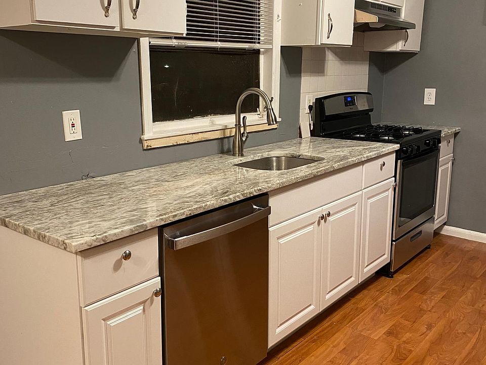 Newly renovated apartment in a beautiful quiet street. The rental is on the first floor of a two family house two doors down from a park. New granite kitchen countertops, dishwasher, hardwood floors, new windows and freshly painted. Washer and dryer on premises. Owner pays for water. Renter pays for all other utilities. One and a half months rent due at signing. There is no pets allowed and no smoking.