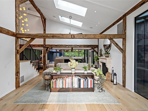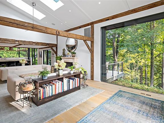 Located on one of the most beautiful streets within the idyllic town of Roxbury, CT, this extraordinarily designed and masterfully renovated residence is perfectly situated on almost 11 acres of private land, adjacent to the beautiful Roxbury land-trust, complete with hiking trails and a waterfall. Newly renovated throughout, this residence has a most unique style that combines the best elements of contemporary architecture while retaining the warmth of a New England home. No detail has been overlooked in the design of this home: from tall panes of glass through which light streams into every room, to handcrafted, radiant-heated and artisan-finished white oak floors, to the selectively restored historic wooden post and beams. The intelligent floor plan allows for privacy and seamless indoor-outdoor living whereby one can step onto the beautiful stone patios that overlook the surrounding woods and the stream below, from all the main rooms of the house. The exquisite beauty of nature is ever-present in this one-of-a-kind residence.