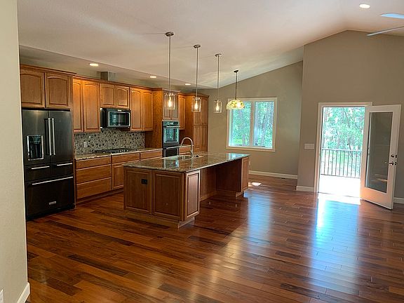 New Custom Ranch with full unfinished (at this time) walkout basement. Covered front porch, and covered back deck - Sits on 5 acres of mature Ponderosa Pines.