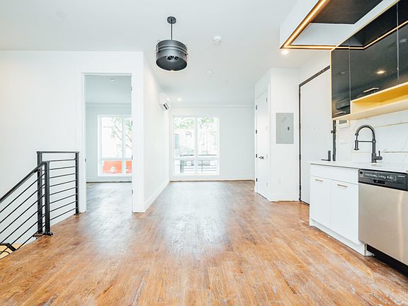 DIRECT ENTRANCE TO BACKYARD - Spacious 3 Bed - 2 Bath Massive 2.5 bed duplex unit. Brand new building with amazing finishes! 2 huge bedrooms upstairs plus a giant basement office/studio space. The unit has huge common space (nothing like it!), top of the line appliances, great queen size bedrooms with closets, large windows, and direct yard access. Laundry in building, shared backyard and rooftop all a super short walk to the JMZ! Surrounded by tons of great bars, restaurants, cafes, gyms, grocery options and transit!