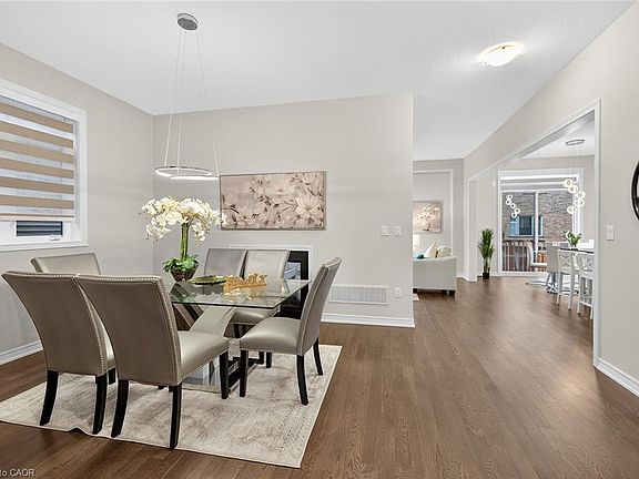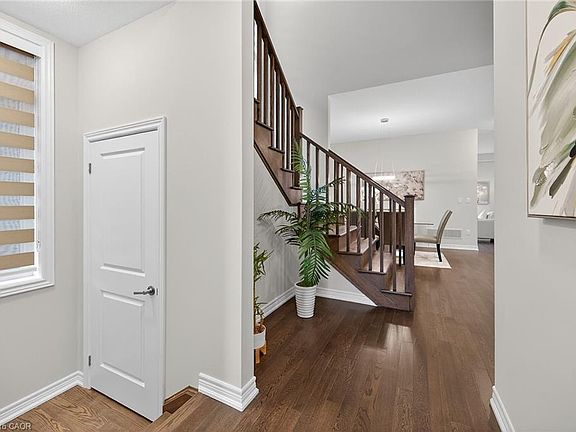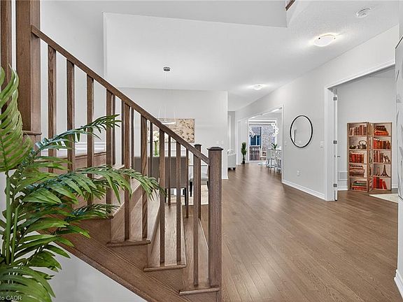 Welcome to 67 Starfire Crescent - a stunning Branthaven built spacious 5-bedroom, 4-bathroom home offers nearly 3017 sq ft of thoughtfully designed living space in a quiet, family-friendly neighborhood with escarpment views. Step inside to find a bright and elegant main floor featuring hardwood flooring, a private den/library with French glass doors, and a stylish family room with a two-sided fireplace. The gourmet kitchen includes extended cabinetry, a generous breakfast area, and modern finishes throughout. Upstairs, convenience meets comfort with a second-floor laundry room and three bedrooms boasting Semi-ensuite access-including a Jack & Jill setup perfect for families and Master bedroom with Ensuite and large sized walk-in closet. Hardwood stairs, a double-car garage, and tasteful upgrades throughout add to the appeal. Enjoy quick access to the QEW, Fifty Point Conservation, shopping, dining, and more. This is the perfect blend of luxury, space, and location—don't miss your chance to call it home!