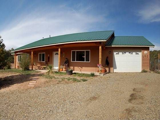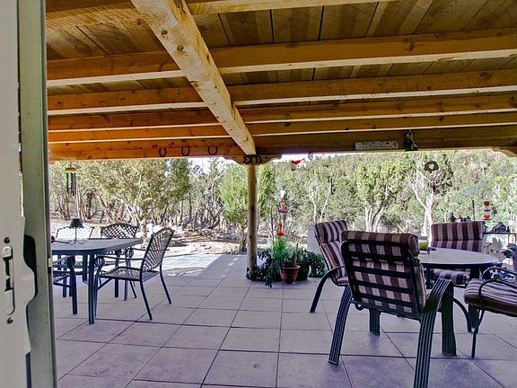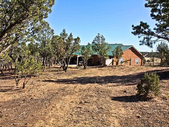 Enjoy privacy and views from 3 1/2 wooded acres! Incredible single-story Kodiak home built in 2005 set back from the road for the ultimate in east mtn living. Enjoy the open floor plan w/ vaulted ceilings, large, eat-in kitchen and dining room that opens to your beautifully tiled, covered back patio. The property is a delightful mix of meadows, pinons/junipers and rolling hills fully fenced for your horses or pets with level sites ready for a 2 car garage, workshop or barn...Easy access to I-40!