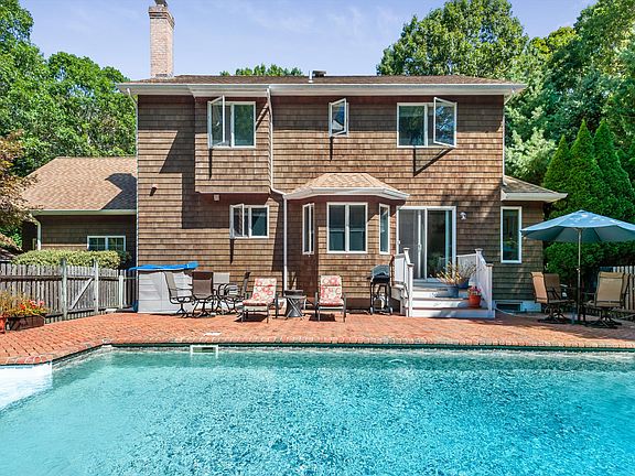 Ideally situated in Southampton surrounded by multi-million dollar homes and just 4 minutes to Southampton Village, this charming home is tucked away on a full acre of beautifully landscaped grounds Featuring 3 three bedrooms, including a generous master suite with walk-in closet and large bathroom, four bathrooms, an inviting open kitchen with breakfast area, adjacent to and complemented by a cozy living area with a gas fireplace. Formal living and dining rooms add to the common spaces with plenty of room to spread out. The interior also includes a butler's pantry, a convenient laundry/mudroom, and a fully finished basement with three distinct rooms, including a media room with a bar and an additional full bath. The serene backyard is a private oasis, complete with a deck, pool, and lawn perfect for entertaining outdoors or even possible expansion. Plenty of upside potential as an investment or full time, year round or seasonal haven. Polite 24 hr notice please.