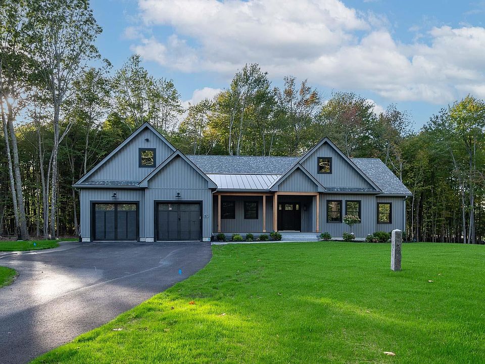 Introducing The Belknap, a thoughtfully designed modern farmhouse by award-winning River Birch Builders, known for their exceptional craftsmanship & dedication to customer service. Situated near Great Bay, downtown Portsmouth, golf courses & NH seacoast beaches, this stunning home artfully blends timeless architectural charm with modern-day comfort. Offering effortless single-level living, this home features 2,770 sf of beautifully curated space, including 4 generous bedrooms & 2.5 elegantly finished bathrooms. Nestled on a tranquil 1.44-acre wooded lot, the setting delivers both natural beauty & peaceful privacy. Designed with future flexibility in mind, the home includes a full basement with partial walkout & a walk-up to a 500sf unfinished bonus room above the garage—ideal for a guest suite, studio, or home office. Inside, refined finishes & thoughtful details abound—warm wood accents & a neutral palette create an inviting & sophisticated space. Whether you're hosting a gathering or enjoying a quiet night in, the open-concept layout & gracious living spaces offer the perfect balance of style & livability. Additional highlights include an attached two-car garage with direct entry, mudroom, walk-in pantry, generous setback from the road for added privacy, a nicely sized back deck, & ample outdoor space to create your dream backyard escape. Don’t miss the opportunity to own a masterfully built home in highly sought-after Greenland, NH. OPEN SAT. 10/4, 11-1pm.
