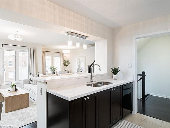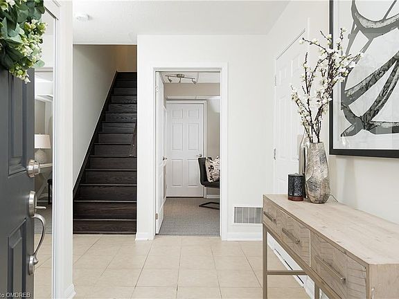 Gorgeously upgraded FREEHOLD Mattamy Currant model situated on a quiet street in the neighbourhood of Willmott. Beautiful curb appeal with lovingly cared for gardens. Inside access from the garage into the house for added convenience. The unique main floor office is the perfect space to work from home & you still have room for storage in the utility room. Open concept floor plan that is basking in natural light. The Kitchen has a spacious pantry, breakfast bar, beautiful quartz countertops and backsplash. BBQing is easy on your balcony & dining in the open concept dining room so you never have to miss a moment. Up to the third floor you have your laundry room which is exceptionally convenient to not have to haul your laundry down two flights of stairs. Each bedroom has the luxury of its own bathroom & the Master bedroom has a walk-in closet with custom organizers. You are a few steps to the park that provides a gorgeous view of the sunset on your evening walk. You will love living here.