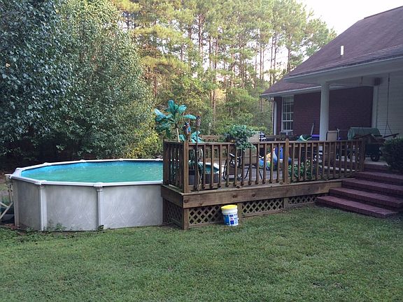 3 bedroom 2 bath home, Split Plan, Kitchen, Den w/vaulted ceiling, Laundry Room with hanging clothes rack, Master Bedroom w/Tray Ceiling, Master Bath w/ 2 Vanities, jetted whirlpool garden tub, separate shower and walk in closet. 2 bedrooms and bath on the other side of the house. Large covered front and back porches. Deck with above ground swimming pool. Two car garage with storage room and double wide driveway. Central heat and air. Seamless gutters. Oak Grove School District.