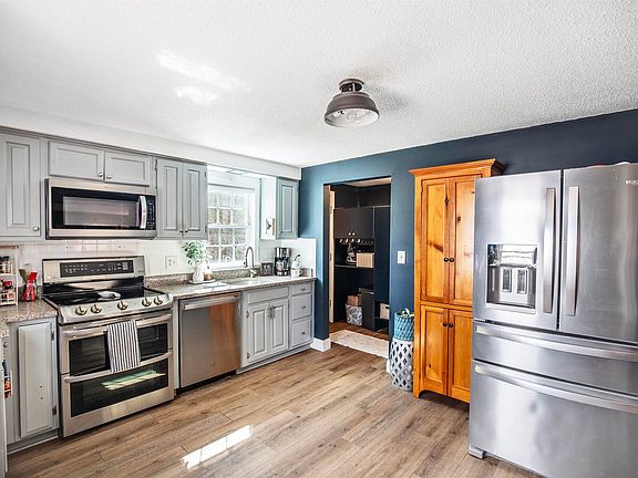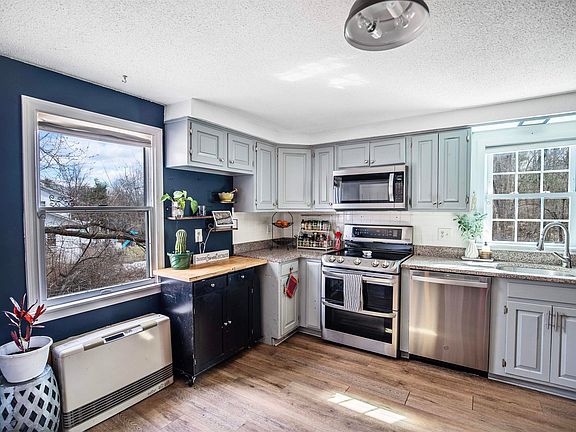 Welcome to this charming home in East Derry! This beautifully renovated 2-bed, 1 ½-bath duplex is the epitome of cozy comfort and modern convenience. Perfect for first-time buyers or those seeking affordable living, this lovely home offers a tranquil retreat tucked away off the street, complete with a fully fenced yard for your privacy and enjoyment. Step inside to discover a spacious living room that seamlessly flows into the inviting eat-in dining/kitchen area complete with granite countertops, newer stainless appliances, and abundant natural light. The laundry/mudroom cabinetry was recently added to the back hallway for even more storage space. The hallway also houses the ½ bath and offers direct exit to the porch. The addition of new luxury vinyl flooring throughout the first and second level and hardwood on the stairs is a nice upgrade. Enjoy the peace of mind that comes with a newer roof, water heater, second-floor windows. The partially finished and insulated basement offers 450 bonus square feet, currently utilized as a home gym and office. FHA approved and pet-friendly, this home is conveniently located 40 minutes to Logan Airport, 15 minutes to Manchester, and 40 minutes to the seacoast. Pinkerton School District. Don’t miss this one, it will not last long!