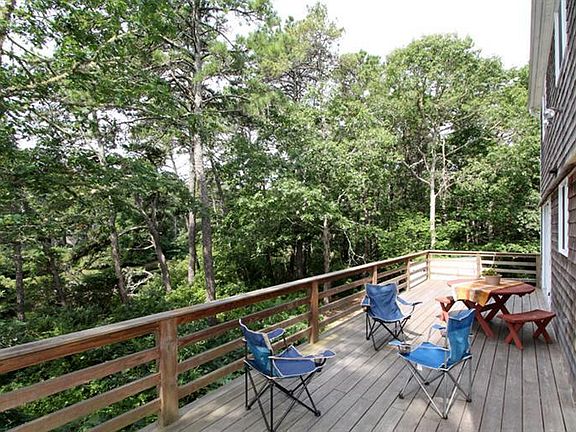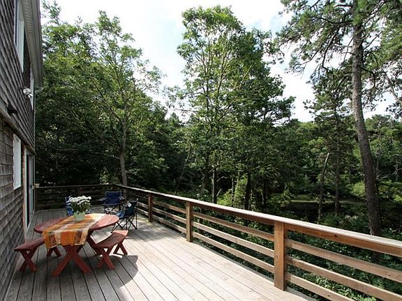You'll love this peaceful pond-front setting! Enjoy privacy plus turtles, birds and wildlife from your 10' x 36' deck overlooking scenic Duck Pond. This 3BR, 2.5 Bath home is very open with cathedral ceilings, but feels warm and cozy with lots of custom woodwork and a 2-story stone fireplace. First floor master bedroom has private bath plus sliders that open to the deck. A full walk-out basement with lots of big windows, sliding glass doors and another fireplace offers potential for lots of additional living space. Right down the road you can launch your boat at Quanset Pond and enjoy Pleasant Bay. There are several walking paths and parks nearby, and easy drives to Orleans' Nauset Beach and Skaket Beach, or to town for shopping and dining out. 1 Car garage under, newer septic (2008)and roof.