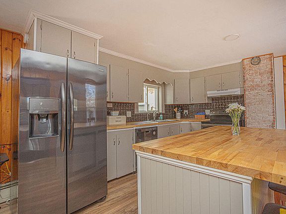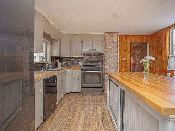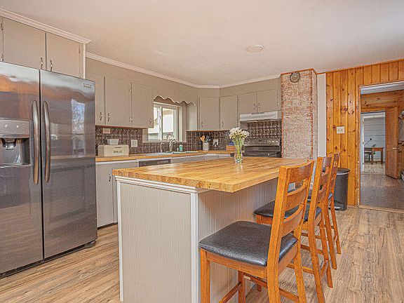 You won't want to miss out on this one. Beautiful New Englander style home located in the heart of Franklin County in the foothills of Maine Western lakes and mountains region. Great 4-bedroom, 2-bath home with an attached 2-car garage, out building, paved horseshoe type driveway and sited on a large in-town lot (1.5 acres). Lower level has a large open concept country kitchen and dining room, living room, office, full bath and a separate laundry room. Modernized with butcher top island and countertops, vinyl flooring, fresh paint, new chandelier, updated bathroom and exterior light fixtures. Living room boasts hardwood floors. The second level has 4-bedrooms and a full bath. Lots of storage space or a perfect area for a substantial workshop above the garage/office. This home has so much to offer. It is move in ready with some magnificant updates, yet has some areas that a buyer can add their personal touches to make this house home. Nice, large back lawn with many trees and bushes including Lilacs, crabapple, magnolia and apple trees. Watch the deer casually parade through the back yard. Just perfection and only minutes from downtown shops, restaurants, the library, schools and Wilson Lake with gorgeous mountain views. So much recreational opportunity as it is only a couple minutes from the Wilson Lake Country Club for golfing, Bass Park, and Kineowatha Park that offers 63 acres that provide walking trails, swimming, tennis courts, volleyball, playgrounds, basketball courts, horseshoe pits, sports programs for children and provides a space for private gatherings. Only 10 minutes to historic Farmington that offers UMF, shops, hotels, hospital, fitness center and Titcomb Mountain for skiing and mountain biking. Charming, quintessential home, natural light, relaxing ambience being sold as is. Come take a look. You will love this home. This could be the one that you want to make new memories in.