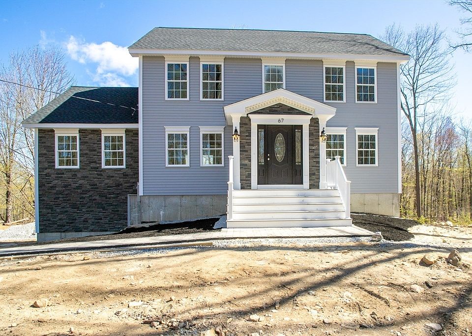This beautiful three bedroom colonial built, to be built. Wood floors & immaculate trim work throughout this Open Concept first floor. First floor has a huge family room with vaulted ceiling, dining room & amazing kitchen. Kitchen has granite counters, center island, tiled backsplash & breakfast nook looking out over the back composite 14'x12' deck & yard, all vinyl exterior trim, granite and brick front porch. Second floor has a vaulted primary bedroom with attached bathroom amazing extra large tile shower double sinks with granite and large walk-in closet.