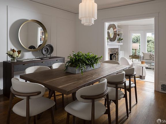 Rarely available on coveted Woodland Avenue, this 1927 single-family home blends architectural elegance with thoughtful modern upgrades. With approximately 1,978 sq ft of living space, the residence offers scale, natural light, and a coveted setting in Cole Valley/Parnassus Heights. A welcoming foyer leads to formal living and dining rooms with coved ceilings, original moldings, and a wood-burning fireplace that reflects the home's period character. The renovated kitchen features custom cabinetry, quartz surfaces, premium appliances, and a skylight that bathes the space in natural light. A half bath is conveniently located just off the kitchen. Double French doors open directly to the deck and terraced garden, extending the living area outdoors for entertaining or quiet retreat. Upstairs, three bedrooms capture abundant light and outlooks to treetops, the downtown skyline, and St. Ignatius. The full bath has been refreshed with a hexagonal marble tile floor, new vanity, and designer finishes. A large garage with updated flooring provides parking, storage, and laundry. Set on a quiet, tree-lined street, the home offers rare tranquility just moments from the cafes of Cole Valley, the cultural vibrancy of Haight-Ashbury, and the trails of Mt. Sutro.