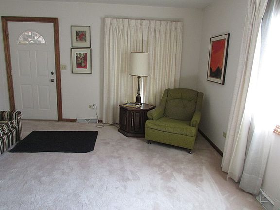 Estate sale - large private yard with mature trees. Lot is 158 ft deep- concrete driveway - large 22 x 12 concrete patio. New carpet on main floor. Laundry on main floor. 3 large bedrooms on upper level. Close to Shoe Factory and Rte 58 stores, tollway, and metra. Has formal dining room- unfinished basement. All appliances are as is.