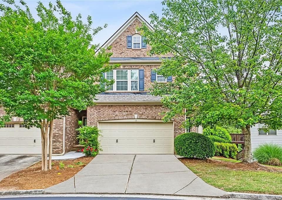 Looking for a spacious townhome in an intimate community? Look no further than this rare to the market light filled 4-bedroom end unit in gated Cobblestone Creek. The owner chose this home for the outstanding views off the back of the home. Enjoy a mountainous feeling with the skyline in the distance from the deck and southwest facing windows. The open plan main level features a formal dining room nook, large living area with a feature fireplace, and an eat-in kitchen. Gleaming floors throughout. Chef’s kitchen complete with stainless steel appliances, granite countertops, and large island. On the second level, the private primary oversized bedroom suite boasts a walk-in closet and luxurious bathroom with oversized shower and deep soaking tub. Two additional bedrooms on the second level offer ample sleep, play and work spaces. The finished light filled terrace level features a large flexible space perfect for home office, media room, or playroom. With an additional bedroom and convenient full bath. Check out the home gym as well. Last but not least, enjoy your coffee, cocktails, and cuisine right outside on your deck built for dining. Don't miss out on the wonderful Cobblestone Creek Amenities: saltwater pool, clubhouse, and walking trails around the pond. Yard maintenance and water covered by the HOA and planned social events. Conveniently located to shopping and resturants! Near the Chattahoochee River and several other nearby parks! Easy Access to 285 for any commuting needs and to easily go to Braves Games at Truist Park! 30 min drive to Hartsfield Jackson Airport.