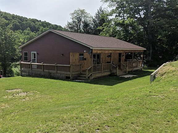 Home is a custom built home with exceptional quality. On demand hot water heater, generator. Home has 2 bedrooms with enough room for a 3rd, hardwood floors, 2 bathrooms with heated floors, heated garage and heated basement. Entire home and garage has radiant floor heating.Basement is totally dry and has enough room for a finished 3rd bedroom if one desires. In addition a porch that wraps around 3 sides. There is 10.33 acres of land with a few older buildings that can be fixed or removed. Property borders a year around registered trout stream. Whether you're looking for a year-round home, a weekend get-away, or seasonal home..you can't go wrong with this move-in ready beauty!