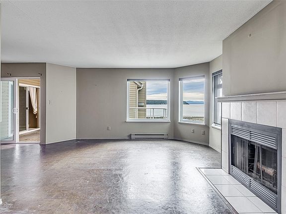 Oh what a view! This top floor unit is quite spacious with deck access from the dining area and primary bedroom. Open concept main living area with southern ocean view! Living room has a fireplace (for use with presto logs) and plenty of windows to sit back and watch the marine activity. Large deck has a covered portion as well as open which offers ocean views and overlooks Rotary Beach Park. There is a separate storage unit located directly across the hall. It also comes with 1 parking stall, building has an elevator and is located directly across from the Seawalk! Just add your own finishes to update this unit and make it your own. Quick possession is possible. No cats or dogs.