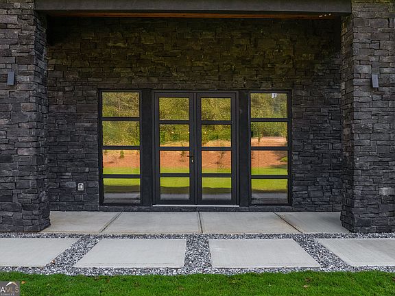 Welcome to 670 Loganville Highway, a gated and fenced luxury estate set on just over 4 private acres and uniquely surrounded by the natural beauty of Fort Yargo State Park. With direct access only a few feet away to scenic bike trails, hiking paths, and the tranquil lake, this home offers an unmatched blend of refined living and outdoor adventure. The residence itself is a showcase of quality and craftsmanship. The exterior combines artisan siding, natural stone, and stucco, all protected with a liquid-applied water and air barrier plus Tyvek wrap-ensuring both elegance and durability for generations. A wide driveway lined with lush sod welcomes you home, offering ample parking for family, guests, and gatherings. Inside, soaring 24' ceilings and abundant natural light create a grand first impression. The chef's kitchen is a centerpiece, featuring granite countertops, premium Forno appliances, custom cabinetry, and a spacious island for cooking and entertaining. Open living and dining areas flow seamlessly, perfect for both everyday living and hosting in style. The primary suite is a true retreat, with a spa-inspired bathroom showcasing heated tile floors, granite vanities, and an oversized walk-in shower. Every bedroom and bathroom reflects a commitment to comfort, elegance, and timeless design. Throughout the home you'll find integrated trim around custom light switches and baseboards, 12mm luxury vinyl plank flooring, and 5/8" drywall for strength and sound control. The entire structure is wrapped in spray-foam insulation-including 8-10" along the roofline-for exceptional efficiency and climate control. Additional features include: Tankless water heater Whole-home water filtration system delivering filtered water to every sink and shower Pre-wiring for security cameras Built-in shelving in the garage for storage and organization Full irrigation system to keep landscaping vibrant year-round The rear covered porch is a destination in itself, featuring solid cedar columns, tongue-and-groove real pine ceilings, and a natural gas hookup for your grill-perfect for barbecues and entertaining. Here you can relax, host gatherings, and enjoy serene views of your private grounds and surrounding parkland. With over four acres of fenced privacy, unmatched build quality, and direct access to Fort Yargo's lake and trails, this home is more than a residence-it is a lifestyle of luxury, nature, and distinction.