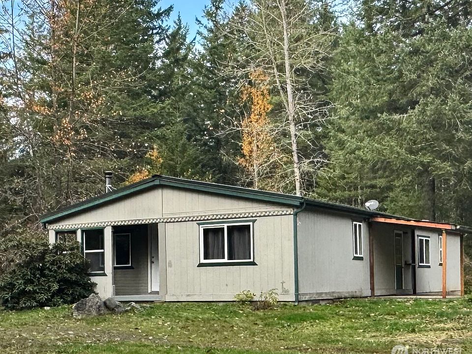 Well maintained 1990 double-wide manufactured home on 2.64 acres with 3 bedrooms and 2 full baths. The home features an open layout with a large living room a wood burning stove and dining area. The kitchen offers lots of counter and storage space. Off the kitchen is an oversized utility room suitable for laundry and pantry use. The primary bedroom includes a full bth, private water closet, and walk-in closet. Two additional bedrooms and a second full bath provide added living options. Exterior acreage offers space for a variety of uses, including garden, campfire site, and even a babbling creek with a 1986 detached general-purpose building with a 2-car garage and an upper area suitable with some fixen for lots of storage or future shop use